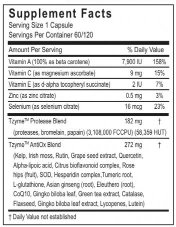 - Antioxidant Support. This formula contains the antioxidants Vitamin A, Vitamin C, Vitamin E, Zinc, and Selenium. Also includes a comprehensive AntiOxTM blend to scavenge and correct oxidized molecules, helping prevent free radical damage in the body.*